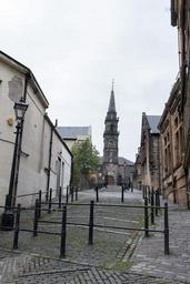 Keywords: outdoor street church spire cobblestone vqegglasgow:scene=scene07 vqegglasgow:device=eos70d road architecture Paisley Paisley