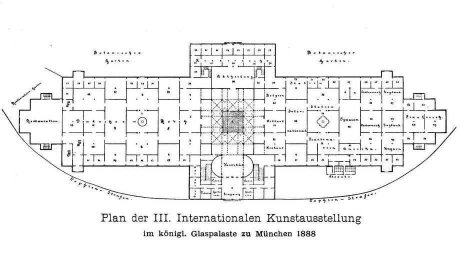 Keywords: Glaspalast 1888 0002.jpg 0001 003 unknown Saalplan 1888 PD-old Glaspalast München 1888 Glaspalast München