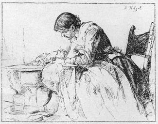 Keywords: Glaspalast 1888 060.jpg 059 061 Creator Adolf Hölzel Vor der Hochzeit Glaspalast München 1888 Adolf Hölzel Sewing in art Wedding dresses in art 1888