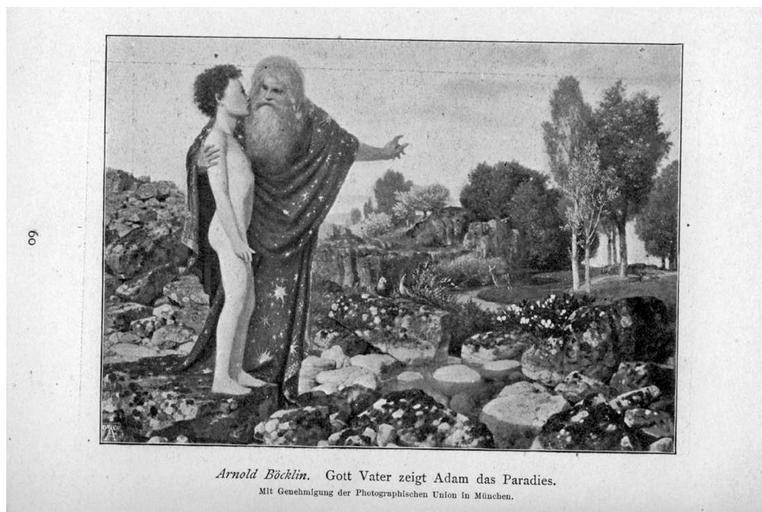 Keywords: Glaspalast München 1897 063.jpg 062 064 Creator Arnold Böcklin Gott Vater zeigt Adam das Paradies Glaspalast München 1897 1890s paintings by Arnold Böcklin Adam in art God the Father