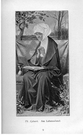Keywords: Glaspalast München 1900 086.jpg 085 087 Creator Théophile Lybaert Am Lebensabend Glaspalast München 1900 009 Théophile Lybaert Old women in art Females reading in art Hourglasses in art