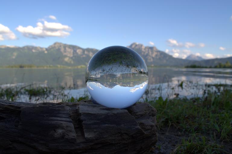 Keywords: glass ball globe image ball alpine panorama lake forggensee outlook landscape