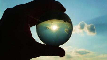 Keywords: glass ball hand decoration sphere round sky cloud earth reflection world global