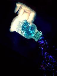 Keywords: glass bottle light magic blue door gravel decoration mystical