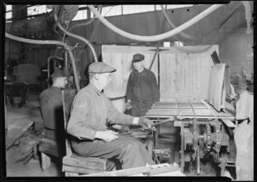 | Keywords: nara:arcid=518638 u.s. national archives usnationalarchives lewis hine lewishine 1937 millville new jersey newjersey the great depression thegreatdepression blackandwhite monochrome black and white Original Caption: Millville, New Jersey - Glass bottles. T.C. Wheaton Co. A pressing shop finishing door knobs. Pressed door knobs are put on to rods seen in the center right of the picture and are rolled along on the machine in front fo gas flames, to be polished. They are taken off by the man in te center of the picture who twists the ends of the knobs to finish them, March 1937 U.S. National Archives’ Local Identifier: 69-RP-411 Photographer: Hine, Lewis Subjects: The New Deal Tennessee Valley Authority Works Progress Administration Work Portraits The Great Depression Persistent URL: research.archives.gov/description/518638 Repository: Still Picture Records Section, Special Media Archives Services Division (NWCS-S), National Archives at College Park, 8601 Adelphi Road, College Park, MD, 20740-6001. For information about ordering reproductions of photographs held by the Still Picture Unit, visit: www.archives.gov/research/order/still-pictures.html Reproductions may be ordered via an independent vendor. NARA maintains a list of vendors at www.archives.gov/research/order/vendors-photos-maps-dc.html Access Restrictions: Unrestricted Use Restrictions: Unrestricted Original Caption: Millville, New Jersey - Glass bottles. T.C. Wheaton Co. A pressing shop finishing door knobs. Pressed door knobs are put on to rods seen in the center right of the picture and are rolled along on the machine in front fo gas flames, to be polished. They are taken off by the man in te center of the picture who twists the ends of the knobs to finish them, March 1937 U.S. National Archives’ Local Identifier: 69-RP-411 Photographer: Hine, Lewis Subjects: The New Deal Tennessee Valley Authority Works Progress Administration Work Portraits The Great Depression Persistent URL: research.archives.gov/description/518638 Repository: Still Picture Records Section, Special Media Archives Services Division (NWCS-S), National Archives at College Park, 8601 Adelphi Road, College Park, MD, 20740-6001. For information about ordering reproductions of photographs held by the Still Picture Unit, visit: www.archives.gov/research/order/still-pictures.html Reproductions may be ordered via an independent vendor. NARA maintains a list of vendors at www.archives.gov/research/order/vendors-photos-maps-dc.html Access Restrictions: Unrestricted Use Restrictions: Unrestricted |