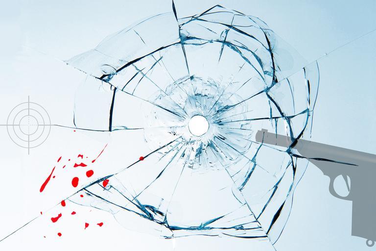 Keywords: glass bullet blood shot bullet hole injury crime disc fragmented broken window blood spatter fear mafia pistol crosshair