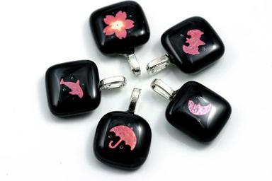 Keywords: glass fused glass jewellery jewelry pendant black fashion necklace accessories flower bat dolphin umbrella moon accessory women