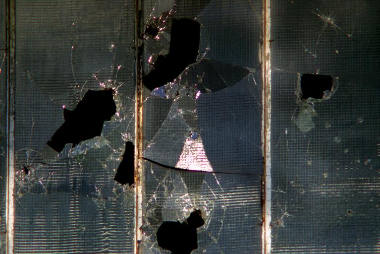 Keywords: glass pane hole broken window destroyed abandoned demolition the ruins of the