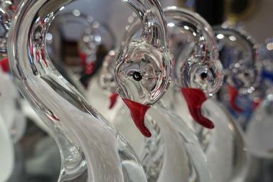 Keywords: glass swans glass blowing mirroring decoration colorful glass work