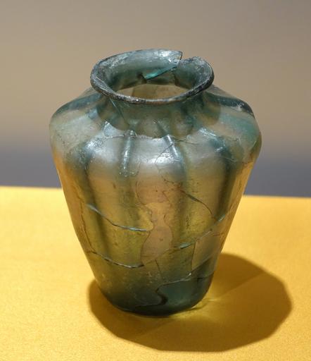 | Keywords: Glass vase from Islamic countries of western Asia, Southern Han period, from the underground palace of Kangling, Xiaoguwei, Panyu, Guangzhou - Hong Kong Museum of History - DSC00767.JPG en Exhibit in the Hong Kong Museum of History Hong Kong This artwork is old enough so that it is in the public domain Photography was permitted in the museum without restriction 2014-07-27 01 31 00 own Daderot other versions PD-100 cc-zero Uploaded with UploadWizard Glassware in the Hong Kong Museum of History |