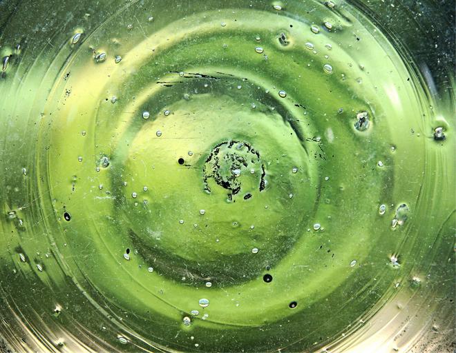 Keywords: glass window green old vintage bottle round imperfection bubble handmade ripple distortion distort lens refraction