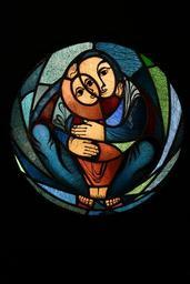 Keywords: glass window kevin schneider-lang mother with child church church window glasmalereie child stained glass