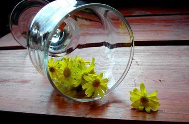 Keywords: glass wooden desk chamomile yellow flowers