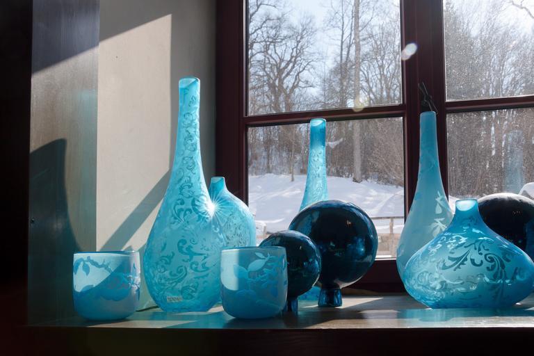 Keywords: glasses blue decoration reflection window glass vases glaskugeln light transparent blautöne