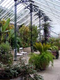 Keywords: glasshouse greenhouse plant hothouse horticulture nursery glass pillars seating botanical