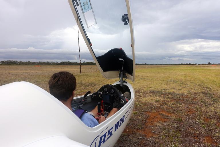 Keywords: glider cockpit flying aircraft contemplation aviation airplane runway departure pilot plane waiting ready takeoff navigation controls captain freedom weather wind