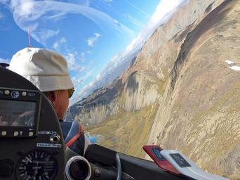 Keywords: glider mountains view cockpit pilot landscape extreme risk scenic adventure gliding freedom action