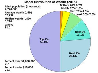 | Keywords: Global Distribution of Wealth.svg translate yes en Wealth shares of different percentile groups in 2015 Data from Credit Suisse http //publications credit-suisse com/tasks/render/file/index cfm fileid C26E3824-E868-56E0-CCA04D4BB9B9ADD5 Table 6-5 Page 149 2016-07-16 own Delphi234 other versions current annually cc-zero Distribution of wealth Economic inequality SVG pie charts | ||||