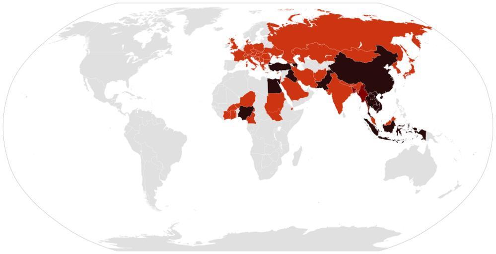 | Keywords: Global spread of H5N1 map.svg 280b0c Countries with humans poultry and wild birds killed by H5N1 800000 Countries with poultry or wild birds killed by H5N1 and has reported human cases of H5N1 cd3412 Countries with poultry or wild birds killed by H5N1 Own work Derived from Global spread of H5N1 map PNG and BlankMap-World6 svg by User Shizhao and w en User Canuckguy on 2006-02-17 and 2006-11-12 respectively <nowiki>Former released under GFDL and latter under </nowiki> Cflm001 <span class signature-talk >talk</span> cwi 2009-05-03 Global spread of H5N1 map PNG File history of Global spread of H5N1 map PNG 05 18 15 May 2007 1 425×625 49 KB Zntrip Talk contribs Added some countries listed on Wikipedia Bangladesh and Ghana removed Jordon 14 58 6 March 2007 1 425×625 31 KB Aivazovsky Talk contribs 13 51 5 February 2007 1 350×625 30 KB Verdy p Talk contribs confirmed human death in Nigeria see WHO report for 3 february 2007 23 50 7 July 2006 1 350×625 54 KB Zntrip Talk contribs Added Spain 18 32 23 May 2006 1 350×625 54 KB Verdy p Talk contribs Import the 15 May update from English Wikipedia 14 20 2 May 2006 1 350×625 54 KB Verdy p Talk contribs import the 27 April update from English wikipedia adds Côte d'Ivoire 14 47 6 April 2006 1 357×628 31 KB Wangi Talk contribs Add UK 02 03 30 March 2006 800×370 91 KB Cinik Talk contribs only update from en H5N1 confirmated in Czech republic 05 36 28 March 2006 1 357×628 30 KB Verdy p Talk contribs Import depuis English Wikipedia 09 11 24 March 2006 1 357×628 59 KB Verdy p Talk contribs 08 43 17 Feb<nowiki>ruary 2006 1 357×628 46 KB Shizhao Talk contribs Summary I made this map by using Image BlankMap-World png Dark red areas have confirmed human cases and light red have bird cases either in poultry or wild birds “ Zntrip 00 07 16 February 2006 UTC Licensing GFDL-self </nowiki> Disease incidence world maps SVG maps of the world Avian influenza maps |