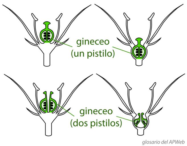 | Keywords: Glosario del APWeb - gineceo y pistilo.svg  en Spanish labels Definitions as in APWeb glossary and Simpson 2005 2010 Plant Systematics glossary APWeb Reference http //www mobot org/mobot/research/apweb/top/glossaryi_p html P gynoecium collectively the carpels of a flower pistil a free carpel or a group of fused carpels a rather confusing term; also as pistillode a sterile pistil often rudimentary - a more useful term Simpson 2005 Plant Systematics Gynoecium refers to all female organs of a flower A pistil is that part of the gynoecium composed of an ovary one or more styles and one or more stigmas Pistils or ovaries may be simple composed of one carpel or compound composed of two or more carpels By convention if there is more than one ovary style or stigma but if any of these appear fused in any way e g three apparent ovaries fused at the base they are all part of the same pistil One unique case are the Asclepiadoids in which the gynoecium consists of two carpels made up of two distinct ovaries and styles but a single stigma joining the styles because the stigmas of the two carpels are connate the whole structure is termed a single pistil Flower images modified from these ones http //www anbg gov au/glossary/webpubl/ovpositi jpg 2014-06-28 19 13 57 own Flower images modified from these ones http //www anbg gov au/glossary/webpubl/ovpositi jpg RoRo As a scientific drawing this file is not protected by copyright laws concerning artistic/literary works In case this were not possible the file is released under a CC-0 license PD-ineligible cc-zero Flower diagrams SVG diagrams in Spanish |