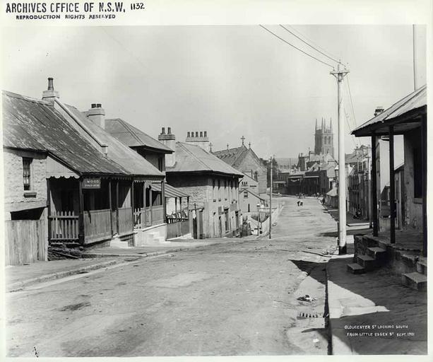 | Keywords: archives state records nsw staterecordsnsw newsouthwales blackandwhite sydney the rocks therocks john degotardi jr. johndegotardijr road building architecture outdoor black and white Title: Gloucester Street looking south from little Essex Street, The Rocks (NSW) [Rocks Resumption photographic survey] Dated: month and year only 01/09/1901 Digital ID: 4481_a026_000206 Rights: No known copyright restrictions www.records.nsw.gov.au/about-us/rights-and-permissions We'd love to hear from you if you use our photos/documents. Many other photos in our collection are available to view and browse on our website using Photo Investigator. Title: Gloucester Street looking south from little Essex Street, The Rocks (NSW) [Rocks Resumption photographic survey] Dated: month and year only 01/09/1901 Digital ID: 4481_a026_000206 Rights: No known copyright restrictions www.records.nsw.gov.au/about-us/rights-and-permissions We'd love to hear from you if you use our photos/documents. Many other photos in our collection are available to view and browse on our website using Photo Investigator. |