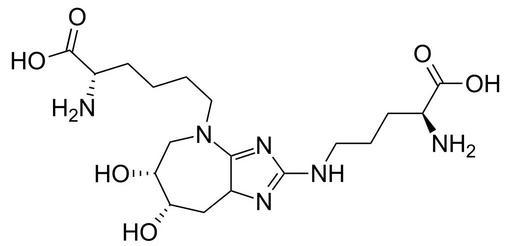 Keywords: Glucosepane.svg Chemical structure of glucosepane Own 13 07 17 March 2011 UTC Ed Edgar181 Alpha-amino acids