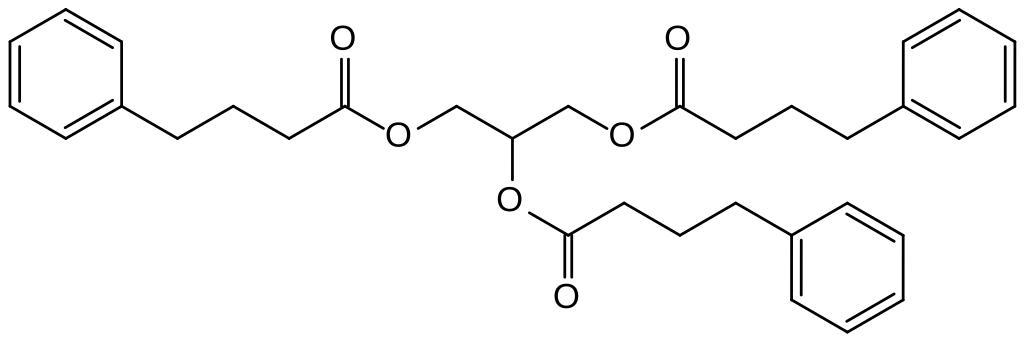 Keywords: Glycerol phenylbutyrate skeletal.svg glycerol phenylbutyrate own Anypodetos 2014-01-02 BKchem 001 -check Triglycerides Prodrugs Cc-zero