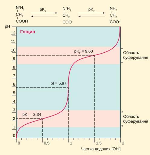 Keywords: Glycine titration curve.svg uk К ива тит ування 0 1 озчину гліцину п и 25°C гід оксидом нат ію Один еквівалент OH<sup>-</sup> 0 1 моль NaOH 2013-05-24 14 56 13 own Zlir'a cc-zero Uploaded with UploadWizard Acid-base titration Glycine