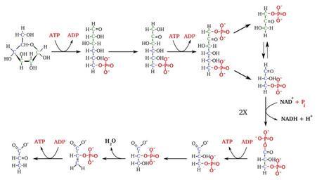 | Keywords: GlycolysisPathway2.svg This version of the glycolysis pathway does not list the names of the molecules or the enzymes I plan to upload another version of this which has them 2007-02-25 Made by me in inkscape http //www inkscape org/ It took me all weekend to figure out how to use this vector graphics program Rozzychan~commonswiki Organic reactions |