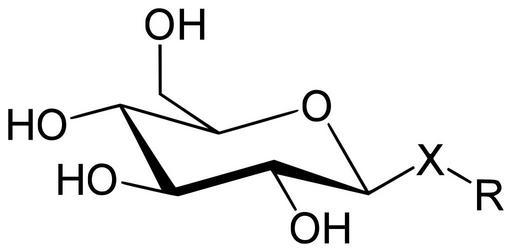 Keywords: Glycoside general.svg en Glycoside in general based on glucose in this case de allgemeine Struktur eines Glykosides was auf Glucose basiert own Yikrazuul 2010-01-24 Glycosides