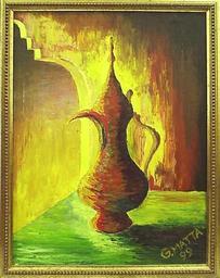 Keywords: Gmatta ancient arabic coffee kettle570x720mm.jpg en The ancient Arabic COFFEE KETTLE Oil painting on fabric canvas April 1999 Size 720x570mm own George Matta 1999-04 George Matta Coffee pots in art
