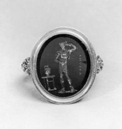 | Keywords: Gnaios - Intaglio of an Athlete - Walters 42109.jpg This gem is signed by Gnaios a well-known gem-carver of the late 1st century BC It depicts a famous Greek statue by one of the followers of the renowned sculptor Polykleitos from the late 5th century BC late 1st century BC Republican garnet gold ring intaglio with gold setting cm 2 15 1 89 0 27 ; ring cm 2 23 diam accession number 42 109 9513 Bessborough Marlborough Carmichael Sale Joseph Brummer New York 1927 Henry Walters city Baltimore Walters Art Museum Henry Walters Acquired by Henry Walters 1927 Signature Gnaios World of Wonder The Walters Art Gallery Baltimore 1971-1972 Polyklet Der Bildhauer der griechischen Klassik Staedtische Galerie Liebieghaus Frankfurt am Main 1990-1991 place of origin Italy Walters Art Museum license Ancient Greek art in the Walters Art Museum Ancient Roman art in the Walters Art Museum Jewellery in the Walters Art Museum Athletes in art Media contributed by the Walters Art Museum needs artist review |