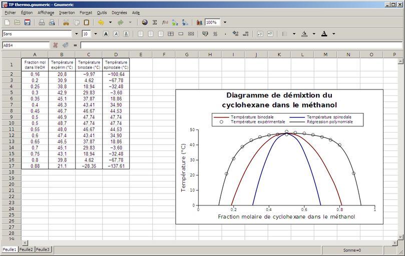 | Keywords: Gnumeric tutorial for chemists interface 2-fr.png Created with Gnumeric Screenshot of the french version of Gnumeric 1 10 4 running on Windows XP showing the software interface Intended for use on the French Graphic Lab Gnumeric tutorial for chemists Experimental data shown in the table come from one of my experiments on non-miscible solvents separation cyclohexane in methanol Capture d'écran de Gnumeric 1 10 4 en français sous Windows XP présentant l'interface du logiciel Conçu pour un didacticiel sur l ™utilisation de Gnumeric par les chimistes Les données expérimentales présentées dans le tableau sont issues d'une de mes expériences sur la démixtion du cyclohexane dans le méthanol own 2010-06-06 Tachymètre <span class signature-talk >talk</span> free screenshot GPL Other data shown on the screenshot are licensed under these conditions Tachymètre Screenshots for Gnumeric tutorials |