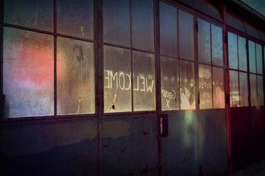 Keywords: goal leave lapsed glass window broken damaged window input gate federal government color metal old building facade home house entrance iron gate