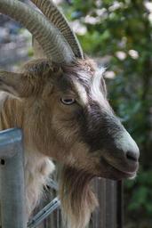 Keywords: goat billy goat fence domestic goat farm zoo livestock enclosure brown petting zoo cheeky curious goatee attention
