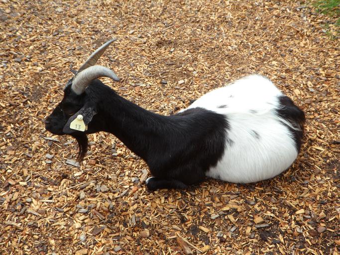 Keywords: goat farm black and white animal domestic goat zoo lying
