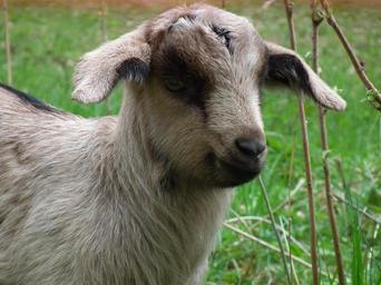 Keywords: goat lamb pasture animal cute grass happy curious young animal animal portrait head view