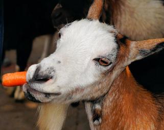 Keywords: goat pet livestock goatee animal husbandry petting zoo eat cute carrot