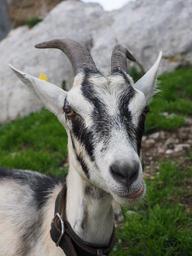 Keywords: goat white chew satisfied animal domestic goat capra aegagrus hircus horns horned bovidae ruminant ruminantia paarhufer artiodactyla pet funny