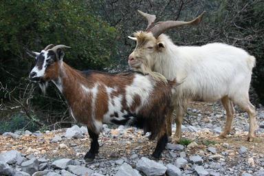 Keywords: goats animals wild mountain goat creature mammal nature animal world billy goat fur brown white goat horns