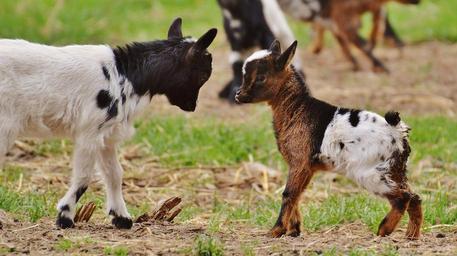 Keywords: goats wildpark poing young animals playful romp cute small young fur quadruped