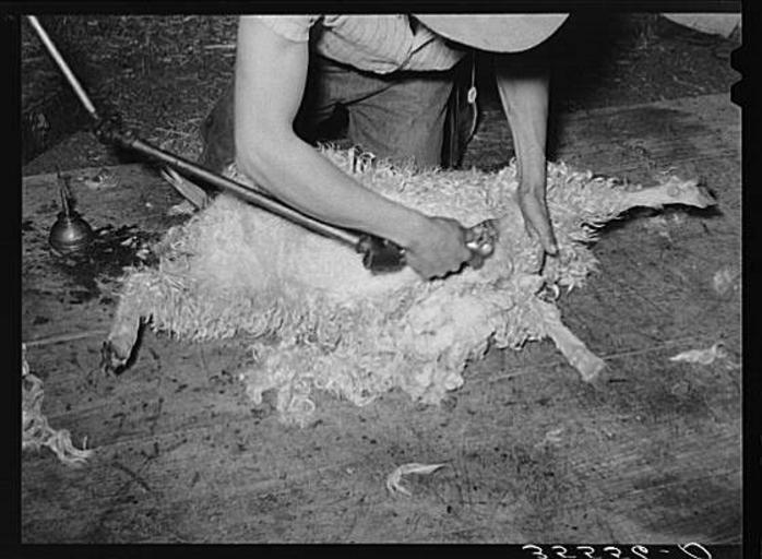 Keywords: Goatshearing.jpg An image from the Farm Security Administration archive PD-USGov Capra aegagrus hircus