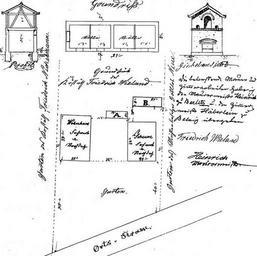| Keywords: Goemnigk Plan9.JPG Neubau Stall mit Taubenhaus hier Ausschnitt mit dem aufgesetzten Taubenhaus 1869 Dorfstr 57 ehemaliges Büdnergut Nr 18 in Gömnigk im Jahr 1869 Das Dorf Gömnigk ist ein Gemeindeteil der Stadt Brück im Brandenburger Landkreis Potsdam-Mittelmark am Rand des Naturparks Hoher Fläming New sty with dove-house 1869 here the dove house Dorfstr 57 The village Gömnigk is a part of the town Brück in the district Postdam Mittelmark state Brandenburg Germany at the border to the natural preserve Naturpark Hoher Fläming BLHA Brandenburgisches Landeshauptarchiv Potsdam Rep 41 Rottstock 13/1 Quellenangabe nach und hier wiedergegeben aus Torsten Hartisch 750 Jahre Gömnigk 151 “ 2001 Beiträge zur Geschichte eines säschsisch-brandenburgischen Dorfes Teil 1 Gömnigk 2002 144 Seiten Keine Verlagsangabe keine ISBN/ISSN-Nr Bezug unter anderem über das Fremdenverkehrsamt Brück / Gemeinfrei public domain da nach den Maßstäben des deutschen Urheberrechts die Schutzdauer für diese Zeichnung abgelaufen ist probably 1869 Author PD-old Dovecotes in Germany |
