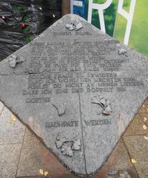 | Keywords: Goethe Gingko.jpg Check categories 2015 July 11 Bronzetafel für Gingko biloba mit dem Goethegedicht Gingko biloba und Aufruf Baumpate werden von Ben Wagin geb 1930; seit 1955 in Berlin lebend an der K -W -Gedächtniskirche in Berlin-Charlottenburg Berlin Deutschland own 2013-11 Miriam Guterland Cc-zero Ginkgo in art Books in German Books by Johann Wolfgang von Goethe Plaques in Berlin-Charlottenburg Ben Wagin | ||||