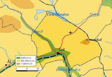 Keywords: Gol map.jpg en Map of Gol municipality Norway Own Jensens 2008-12-07 Maps of Buskerud Gol