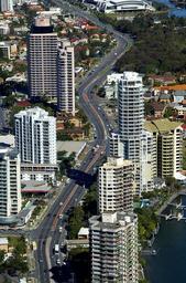 Keywords: gold coast city surfer's paradise skyscrapers towers road buildings hotels apartments zigzag highway queensland australia urban