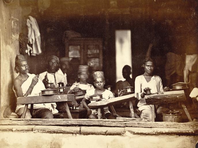 Keywords: Gold and silver wire and thread drawers at work - 1873.jpg en The tinsel wires are made of silver or silver coated with gold leaf and made into a bar which is then forced through a series of holes on a steel plate to obtain increasingly fine-gauged lengths Traditionally the wire was then wound onto a reel as seen in the photograph attached at the other end to a jantar another steel plate which allowed for further refining of the gauge Wires no thicker than a hair were obtained this way A tola 180 grains of metal usually produced 600 to 1 200 yards of wire This product is used sometimes together with silk in a wide range of articles and garments Examples of all the following were sent to the Vienna exhibition turbans saris dresses shoes fringing gold and silver lace shawls rugs and tablecloths It was held that metal threads from India were less likely to tarnish than similar products from other sources 1873 http //www oldindianphotos in/2011_08_16_archive html Shivashanker Narayen other versions Custom license marker 2015 03 25 PD-100 Uploaded with UploadWizard Uncategorized 2015 March 25