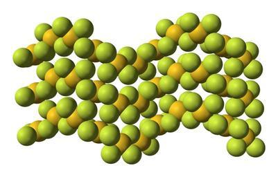 Keywords: Gold-trifluoride-3D-vdW.png Space-filling model of part of the crystal structure of gold trifluoride AuF<sub>3</sub> X-ray crystallographic data from cite journal F W B Einstein P R Rao James Trotter and Neil Bartlett The crystal structure of gold trifluoride 1967 Journal of the Chemical Society A Inorganic Physical Theoretical 4 478 - 482 10 1039/J19670000478 Own 2008-01-24 Ben Mills Benjah-bmm27 Images by Ben Mills Gold trifluoride Crystal structures of fluorides