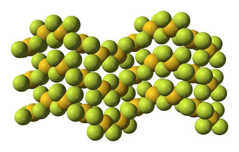 Keywords: Gold-trifluoride-3D-vdW.png Space-filling model of part of the crystal structure of gold trifluoride AuF<sub>3</sub> X-ray crystallographic data from cite journal F W B Einstein P R Rao James Trotter and Neil Bartlett The crystal structure of gold trifluoride 1967 Journal of the Chemical Society A Inorganic Physical Theoretical 4 478 - 482 10 1039/J19670000478 Own 2008-01-24 Ben Mills Benjah-bmm27 Images by Ben Mills Gold trifluoride Crystal structures of fluorides |