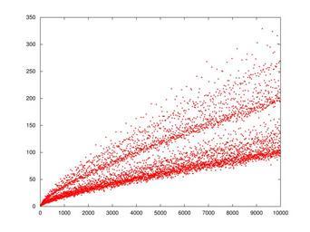 | Keywords: Goldbach-10000.svg en A graph showing the number of ways an even number can be written as the sum of two primes 4 < n < 10000 de Ein Graph zeigt die Zahl der Möglichkeiten wie eine gerade Zahl als Summe zweier Primzahlen geschrieben werden kann 4 < n < 10000 own Mucfish 2009-11-24 thumb n < 1000 thumb n < 100000 Goldbach's conjecture |